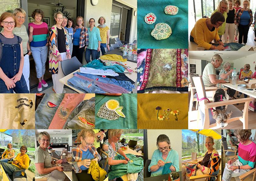 Den Auftakt machte der Workshop “Visible Mending” unter der Leitung von Martina Böhnlein, Schneidermeisterin und Modedesignerin,das von der japanischen Technik “Sashiko” inspiriert wurde. Dabei wurden liebgewonnene Kleidungsstücke und andere Textilien durch bewußt sichtbar gesetzte Nähte, Flicken, Bänder u.ä. nicht nur repariert, sondern sogar aufgewertet. Nach einem kurzen Einführungsvideo und Quiz zu den unfairen Bedingungen bei der Herstellung von Kleidung, kreierten eine Gruppe von Frauen im schönen Theresia-Petsch-Haus kreative und nachhaltige Werke in gemeinsamer Arbeit.