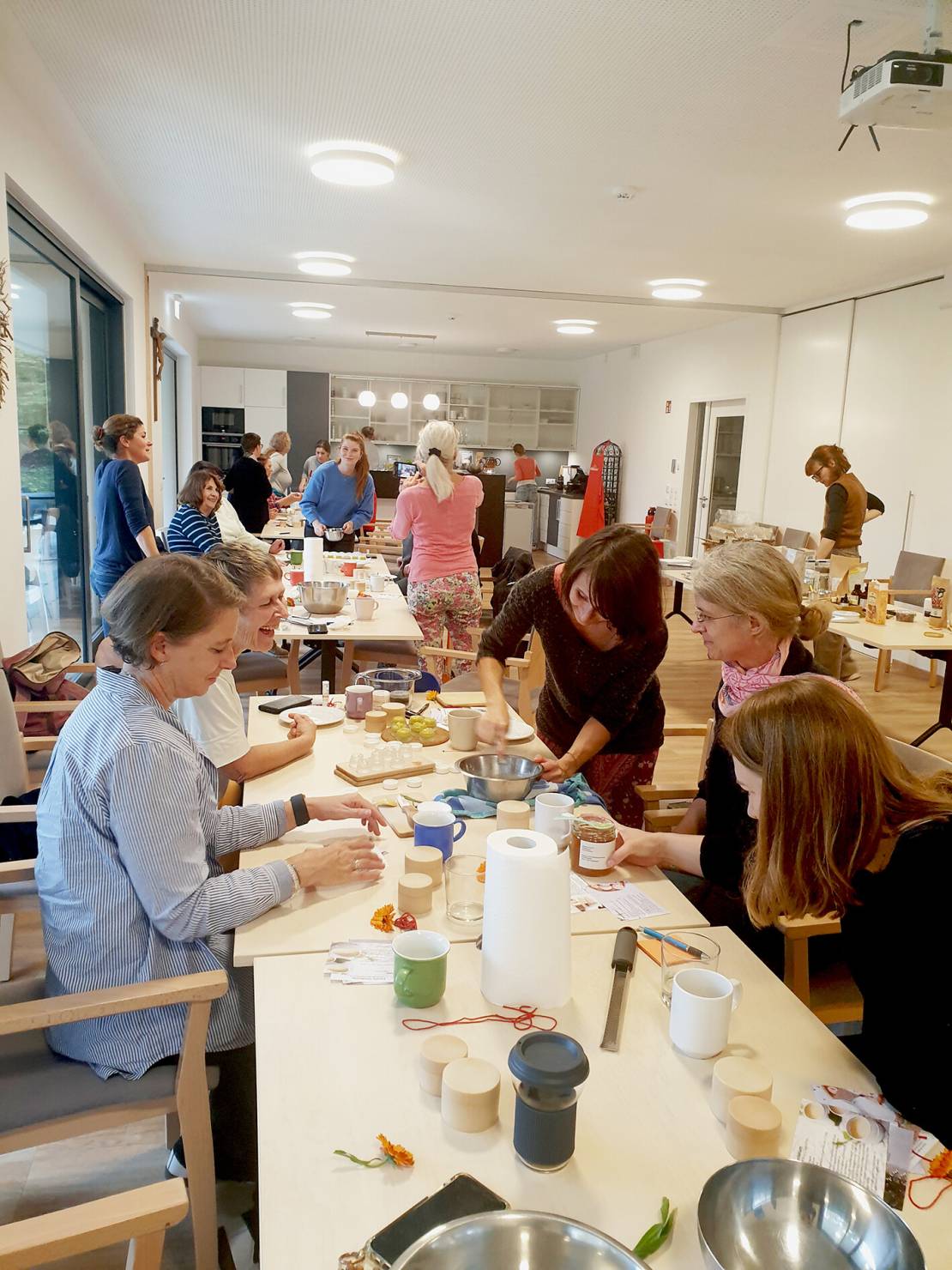 Im Herbst fand dann unser zweiter Workshop zum Thema Kosmetik statt. Zunächst vermittelte Susanne Stahl, Produktmanagerin von Pharmos Natur und Mitglied der Fairtrade-Gruppe, Informationen zu nachhaltiger Kosmetik. Danach wurden eigenhändig sechs wunderbare Produkte,wie Bodyscrub oder Spitzwegerich-Salbe, aus hochwertigen und teilweise auch regionalen Rohstoffen hergestellt. Auch der Beitrag dieses Workshops in Höhe von 300 Euro wurde an das Kinderhospiz gespendet.