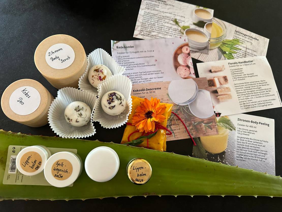 Selbstgemachte Kosmetikprodukte erfreuen sich im Workshop und auf dem Weihnachtsmarkt großer Beliebtheit.